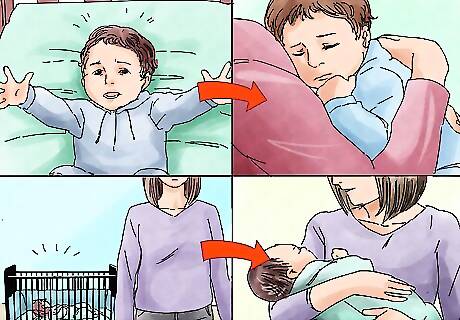 Respond to your baby’s needs. Babies are unable to tell you what they want directly. This means you will need to pay attention to the actions and non-verbal cues that your baby gives. When you know what your baby needs, give it to them. If that doesn’t work then you may have misinterpreted their needs, and you should try something else. For example, if your two week old is crying and isn’t soothed by their bottle, they may need to burp instead of eat. Try burping your baby, and if that doesn’t soothe them, move to the next thing (such as rocking), and so on.