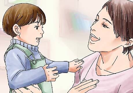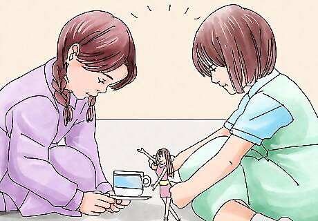 Interact with your child as a role model. While interacting with peers is an important part of learning social skills, it isn’t foolproof. Other preschoolers that your child plays with are likely to have roughly the same social skills as your preschooler. This means that more advanced social skills will come from modeling older kids and adults. As a parent, you should try role playing games and take charge in your helping your child learn to be social. For example, preschoolers may practice saying please and thank you while they play, but may need your guidance to understand that they should make eye contact when they do so.