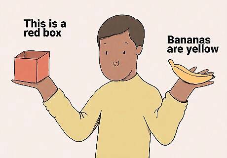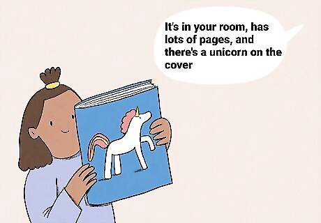 These games help your child practice speech and learn new words. Try describing an object, then have your child guess the object and bring it to you. You could say something like, "We use it to sweep the floor" and let them bring the broom to you. Or you could say, "It's in your room, has lots of pages, and there's a unicorn on the cover" and have them bring a specific book to you. You could also try putting objects in a paper bag and let your child reach in and touch them one at a time. Ask them to describe what it feels like and say what they think it is. This is great for sensory development, too!