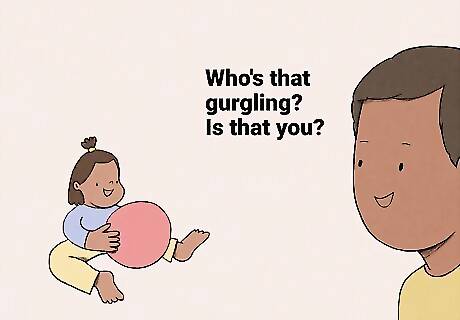 Remember that babbling and gestures are communications, too! Responding to your baby's coos, gurgles, and laughter stimulates them and keeps the "conversation" going. It also gives you an opening to say or show them something new. For example, if your baby gurgles happily, turn to them, smile, and say, "Who's that gurgling? Is that you? Mama hears you!" If your baby laughs, laugh back at them and say something like, "Oh, is that funny? You're my silly girl, aren't you?!" If your baby scrunches their nose or opens their eyes super wide, make those same faces back at them.