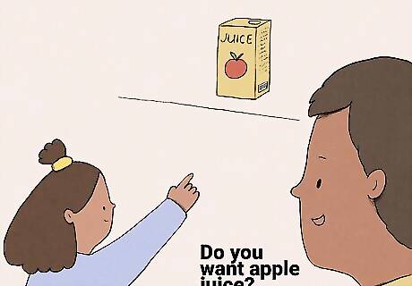 This helps with comprehension, speech, and decision-making. Asking your toddler to make a choice between two things prompts them to focus on what you're saying and respond in an interactive way. Plus, they'll love choosing things for themselves since they've never really done that before! It's best to give toddlers a choice between two distinct items. For example, you might ask, "Do you want apple juice or orange juice?" or "Do you want to wear your red jacket or your blue jacket today?" As your child gets older, ask them open-ended questions without providing the options. That way, they get to practice making decisions all by themselves. For example, you might say, "What do you want for breakfast this morning?" or "What game are we playing today?"