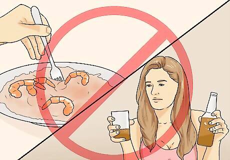 Watch out for sulfites in food and drink. Some people react to sulfites, a type of food preservative often found in processed foods. The following foods often contain sulfites, but may be available in sulfite-free preparations: Dried fruits or vegetables Wine and beer Shrimp (including fresh shrimp) Bottle lime or lemon juice Many processed or pickled foods, especially potato products