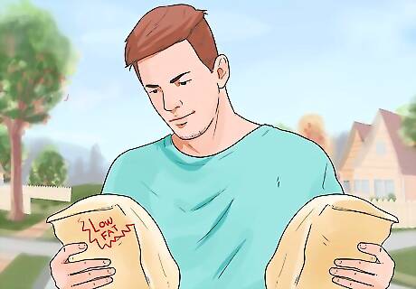 Feed your dog less calories and a healthy, lean food. Clearly, if your dog is overweight it needs to be fed less. This could mean continuing to feed it the same food, but just cutting down on the amount you are give it. It could also mean changing its food to a type that is designed to help it lose weight. Whatever you decide to do, it's best to consult with your veterinarian before making changes to your dog's diet and the amount you feed it. If you are considering changing the type of food you are feeding your dog, remember that you need to make adjustments gradually. An abrupt change in food could put your dog's digestive system into shock and cause illness. Instead, gradually incorporate the new food into the old food over the course of a week or two, so that by the end your dog is completely on the new food.