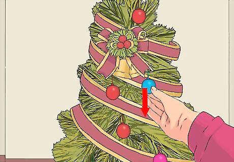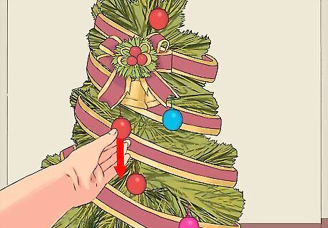 Do arts and crafts with leftover pieces. Cut off some of the more hydrated branches of the tree, and bind them into a wreath that can be hung on your door, used as a winter centerpiece, or wrapped around the bottom of candles. If you have an essential oil extractor, you can try to extract the oils and scents from the pine needles to make a wintery air freshener.