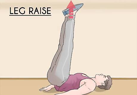 Try leg raises. Lay on your back. Your hands can be palms together on your chest, or you can use them under you to support your back/buttocks. Raise both legs into the air together, keeping the knees slightly bent. Lower them back towards the ground, but don't touch the ground. Do ten reps with your legs together, then try scissoring your legs back and forth.
