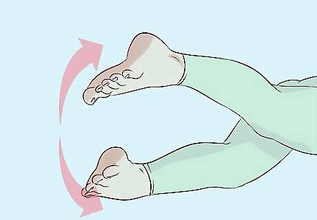 Kick strong through the end. As you reach the end of the swim leg of the race, focus on swimming as long as you can if you're swimming in open water. Kick harder to propel yourself forward and make up as much time as possible going into the transition. Even if you can feel your belly brushing against the bottom, keep swimming until it's possible to stand up and run to the transition area. Standing too soon can take precious seconds to trudge through knee- or shin-deep water. When moving to the transition area, take short, controlled strides and keep your feet strong and secure. You may want to practice running on sand if the swimming leg of your triathlon will be in open water.