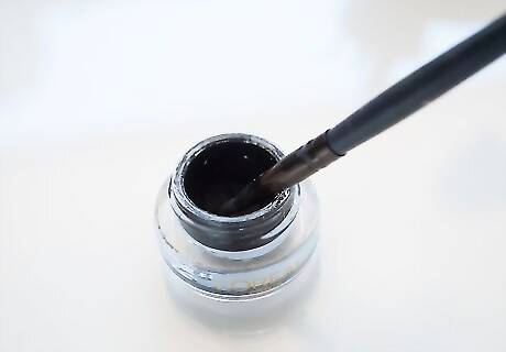 Use gel or liquid eyeliners. The thing that makes stacked eyeliner so striking is its precision. To achieve these crisp, perfect lines, liquid or gel eyeliners work perfectly. While pencil eyeliners are great for everyday lining, it is more difficult to achieve that precise line you want. You can find liquid and gel eyeliners at your local pharmacy or beauty supply store. If you have pencil eyeliner you want to use for this look, use it for the bottom line, closest to the lash line. Then, use a liquid liner for the top line. If you are using a gel liner, make sure to pick up a tiny eyeliner brush as well. The bent liner brushes work extremely well for this technique.