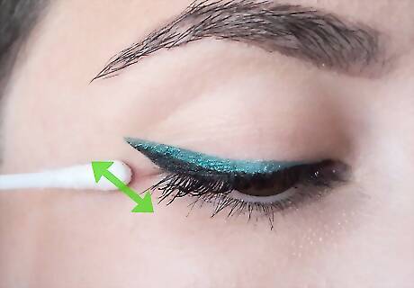 Clean up your eyeliner with makeup remover. It can be hard to apply your eyeliner perfectly, especially the first couple of times you experiment with stacked eyeliner. Luckily, you can clean up any errors after you've applied both colors. Dip a small, angled eyeliner brush or cotton bud into makeup remover to even out the top border. Do the same thing on your wings, making sure that they come to a sharp point.