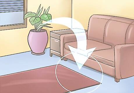 Place a mat or towel on the floor. Place the mat near a couch or another piece of furniture that has a small, but big enough, space to stick your feet under. The resistance from the couch will stabilize your body while you do the twists. Lie down on the mat with your knees bent and place your feet under the couch. Alternatively, you can have a friend hold your feet down for you instead of the couch.