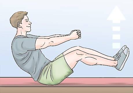 Lift your feet. For this challenge, assume the starting position. However, instead of placing your feet under a couch or having a friend hold them down, lift them up off of the ground. Then, resume the exercise as usual with your feet lifted.