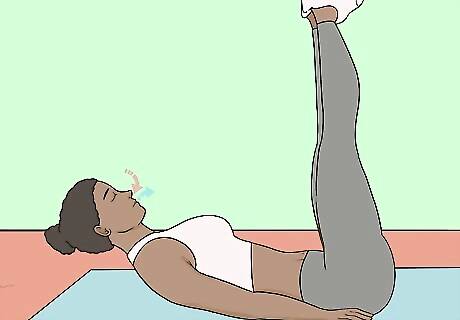 Breathe in and out 5 times while you pump. Breathe in through your nose and out through your mouth. Count out 5 breaths in and 5 breaths out, pumping your arms the whole time you're moving. Try to do 1 pump each time you breathe in and 1 pump each time you breathe out. After 5 breaths, bring your legs and head to the floor to rest.