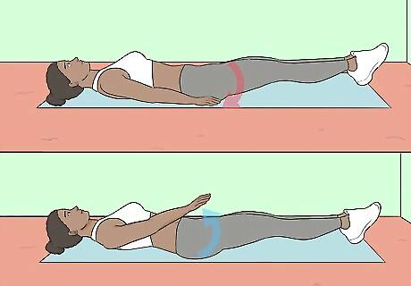 Place a yoga mat down on the floor. You can do this on the bare floor, but you'll be more comfortable if you use a mat, as it provides a bit of padding. However, avoid doing it on something like a bed, which has too much padding without enough support.