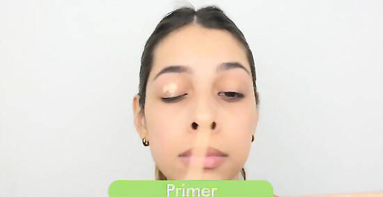 Apply a primer to your entire eyelid. To help your makeup really pop and last longer, apply a thin layer of primer to your eyelids. This can be a specific eye primer, foundation, or a layer of eyeshadow in a neutral color. To apply primer or foundation, use your finger to rub a small dab of cream over your upper eyelid and just below your eye. To apply eyeshadow as a primer, choose a light neutral, such as a cream color, and apply the shadow all over your eyelid and below your eye with a brush.