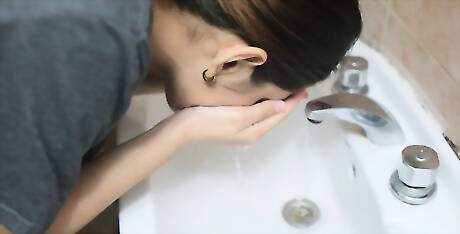 Prepare your face for makeup. A great makeup job always starts with a clean, dry face. If your face is dirty, sweaty, or oily, then the makeup won’t have a good base to stick to, so it won’t be as noticeable and won’t last as long. Wet your face with some warm water. Lather a small amount of facial soap in your hands and rub it on your face using circular motions with your fingers. Use a gentle cleanser that doesn’t contain alcohol. Use warm water to rinse the soap off your face. Pat your face with a soft and absorbent towel. Don’t rub or scrub, as this can damage your skin. When your face is still slightly damp, apply your favorite moisturizer.