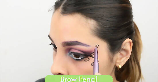 Define and highlight your eyebrows. Use an eyeliner or brow pencil in a color that complements your fairy makeup (such as dark green, red, or blue). Trace the natural shape of your eyebrows with the pencil. With a clean mascara wand or brow brush, brush the color through your eyebrows, sculpting them into their natural shape. Then, take a light eyeshadow or highlighter and brush on a small amount just below your eyebrows to highlight your brow bone. Use a brush to blend it in.