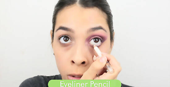 Add color under your eyes. To help make your eyes pop and look bigger, use a white eye liner pencil and trace a thin line following your lower lash line. Try to get as close to the lashes as possible. Take an angled brush and dip it into the lightest eyeshadow color you're using. Trace a thin line below the white eyeliner line. Follow the natural curve of your eye and extend this color toward your temple.