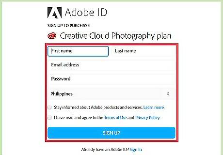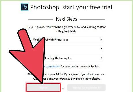 Sign in to Adobe with your existing Adobe ID, or select the option to create an Adobe account. This login can also be used with Creative Cloud, which is the application that manages all Adobe products, including Photoshop.