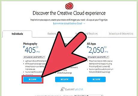 Select “Buy Now” next to the Photoshop package that best meets your needs. Adobe Photoshop can be purchased alone or bundled with other Adobe programs, including Lightroom, Illustrator, and more.
