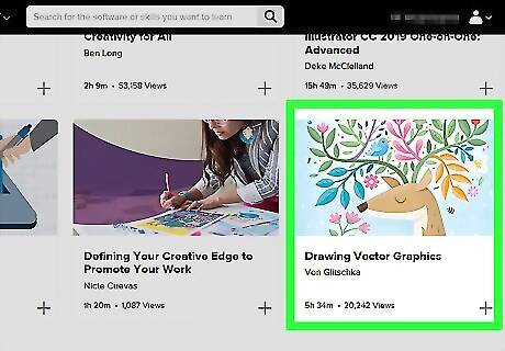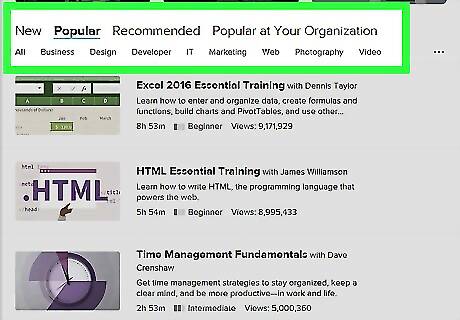 Browse courses. You can click the magnifying glass in the upper-right corner and type a skill or software you want to learn in the search bar. You can also click "☰" and browse courses by subject.