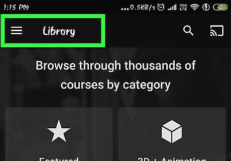 Browse courses. You can tap the magnifying glass in the upper-right corner, and then type a skill or software you want to learn in the search bar. Or you can click or tap "☰" to open the sidebar menu. Then tap "Library" to browse courses by subject.