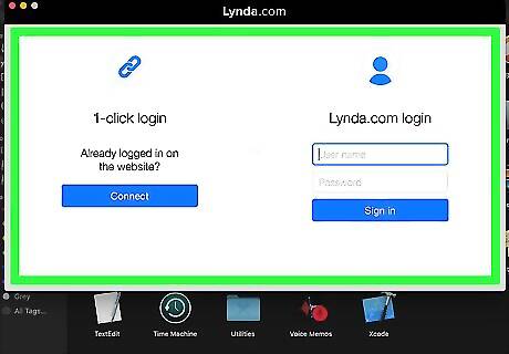Log in to your premium Lynda account. Enter your username and password or click "Connect" on the left to log in with the credentials you already used to log in to the website. You cannot log in to the Lynda app for Mac without a premium account.