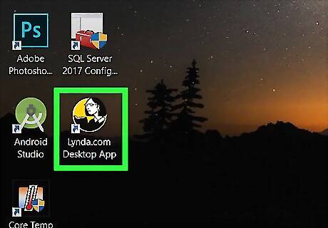 Open the Lynda app for Windows. It's the app that has a yellow image with a woman reading a book. Click here to download the Lynda app for Windows from the Microsoft Store.