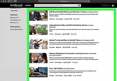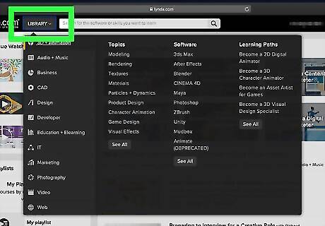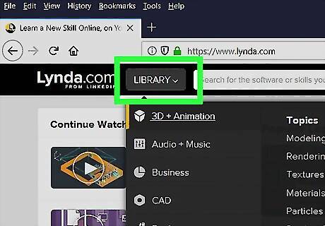 Browse for videos to download. You can type a skill or software you want to learn in the search bar, or click "Library" next to the search bar and browse skills and software programs.