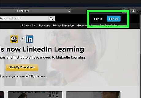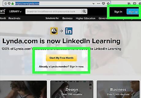 Log in to Lynda.com. Click "Sign In" in the upper-right corner and log in with the email address and password associated with your Lynda account. You can also sign in with your LinkedIn account. If you don't have a Lynda account, click the yellow button that says, "Start My Free Trial". Choose a basic or premium membership and click "Continue". Then you will need to provide your credit or debit card information. Your first month is free.