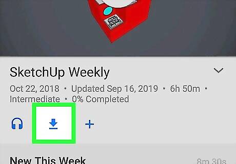 Tap Android 7 Download to download videos. The download button has an icon of an arrow pointing down at a bar. Tap the download icon in the upper-right corner to download the entire course. Tap the download icon across from the videos to download individual videos. To view your downloaded videos, tap "☰" to open then menu, then tap "Downloads" to view your downloaded videos.