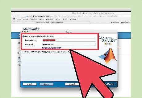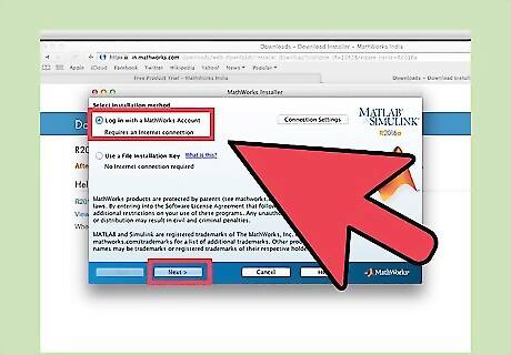 Choose the 'Log in with a MathWorks Account' option, and click Next.