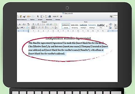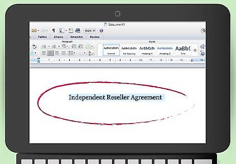 Title the agreement. You can title the agreement “Independent Reseller Agreement” or “Reseller Agreement.” Insert the title at the top of the page, centered between the left-hand and right-hand margin.