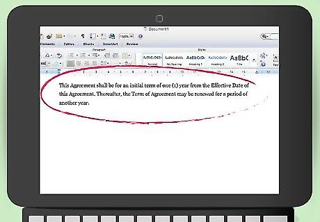 State the duration of the agreement. You can create a reseller’s agreement for any length of time. Be sure to mention also whether the agreement can be renewed at your discretion. Sample language could read, “This Agreement shall be for an initial term of one (1) year from the Effective Date of this Agreement. Thereafter, the Term of Agreement may be renewed for a period of another year.”