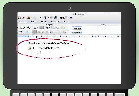 Include details about purchase orders and cancellations. If you want, you can go into detail about how the reseller should order the photographs. You can require that they submit a purchase order. You can also include information about how much time the reseller has to cancel any order.