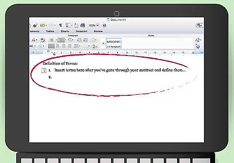 Include definitions. You might want to include a section which defines terms that you think might be unclear either to the reseller or to a judge. You can draft this section last. Once you finish the rest of the contract, go through and see if there are any terms that need to be defined. Reseller agreements typically define the term “territory,” since it is so central to the agreement. You might want to limit the reseller’s right to sell your photographs to particular geographic locations. If so, then define the geographic scope of the reseller agreement when you define “territory.”