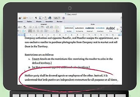 Identify the reseller as an independent contractor. You want to make it crystal clear that the reseller is not your agent or employee. In order to avoid confusion, add a provision stating that the reseller is an independent contractor. You could write, “Neither party shall be deemed agents or employees of the other. Instead, it is understood that both parties are independent contractors for all purposes at all times.”