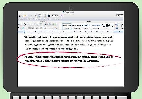Explain that you retain intellectual property rights. The reseller purchases your physical or digital photographs. The reseller does not have a license to reproduce your pictures or gain other copyrights in the work. You should make this very clear in your reseller agreement. For example, you could clarify by including the following: “All intellectual property rights remain vested solely in Company. Reseller shall have no rights other than the limited rights set forth expressly in this Agreement.”
