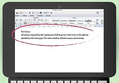 Add a notices provision. Either you or the reseller might need to send written notice under the agreement. You should state the address where you want the notices sent and also explain acceptable methods of sending the notice. Your notice provision could read: “All notices required by this Agreement shall be given to the Party at the address specified on the first page. The notice shall be effective upon actual receipt.”