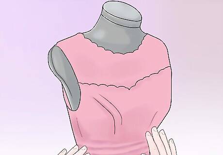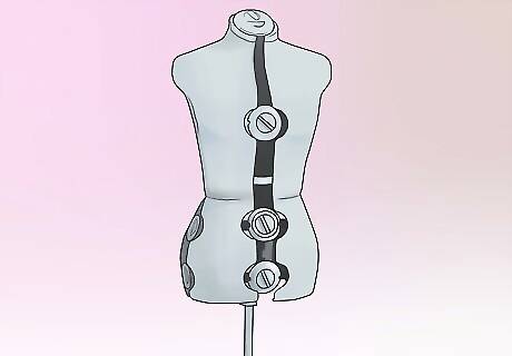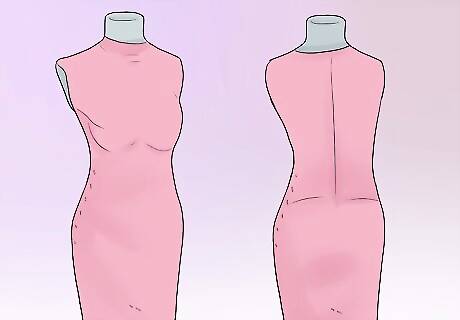 Purchase a dress form. You will need an adjustable dress form to ensure your dress design is made to the exact size you need. Adjustable dress forms are available for approximately $250 brand new.