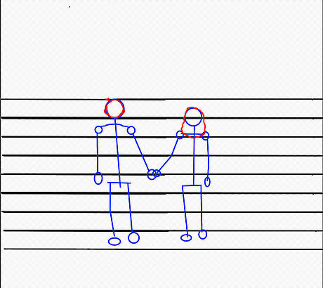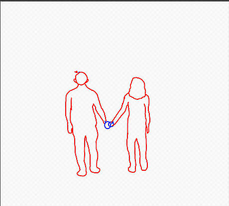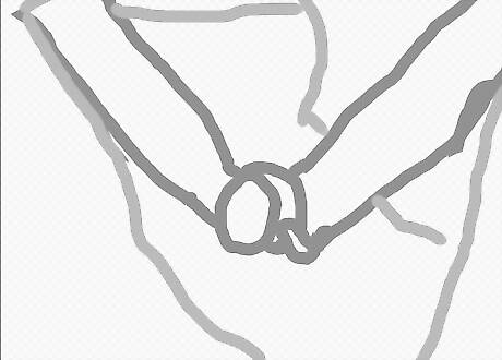 Make circles to represent the hands that are connected. One will be in front of the other. You can also draw some straight lines for fingers if you’d like.