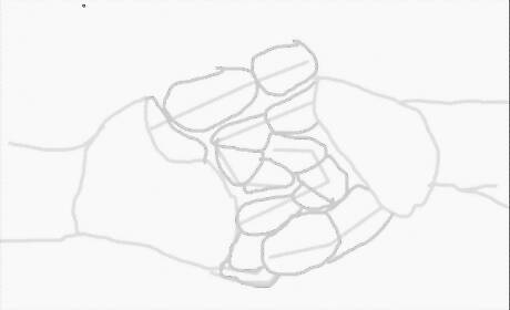 Break their hands into very simple shapes. These serve as guidelines for a little extra help when it's time for you to go in and make them more realistic. Think in the kind of shapes a third-grader would know. Maybe a rectangle for that person's palm, a half-circle for those fingers, parallel (ish) lines for their arms, and so forth.