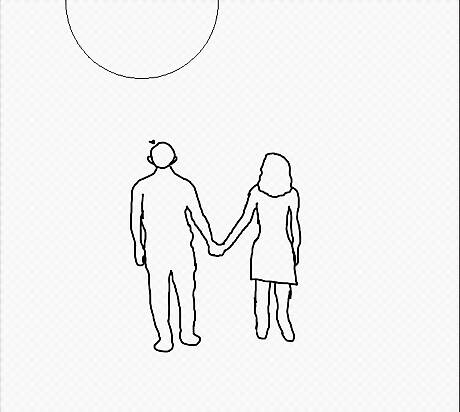 Get a reference picture. It doesn't matter too much if your couple is facing the front or back because the end result will be a single shape with color. The only difference will be the placement of hair, and you can easily alter that on your own. For this tutorial, however, they will be facing away from us.
