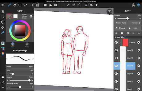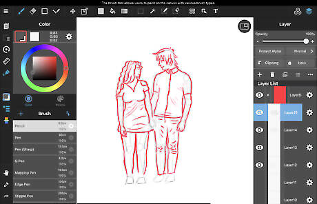 Erase the guidelines that are covered up by A and B's hair and clothes. Refine the rest of them.