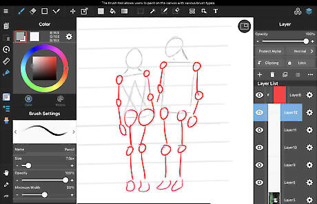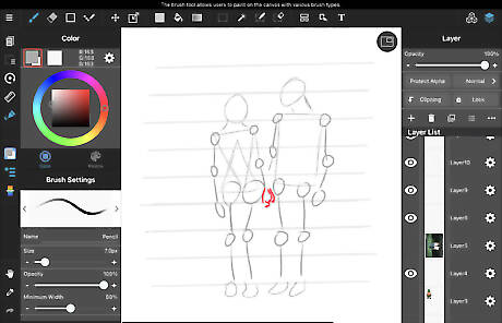 Thicken the framework. Shape your people using the guides and lines from previous steps. You may also add outlines for things like hair and clothes in this step.
