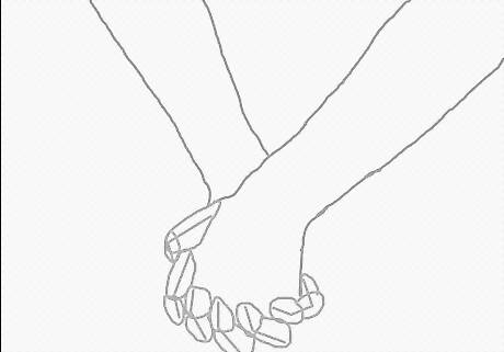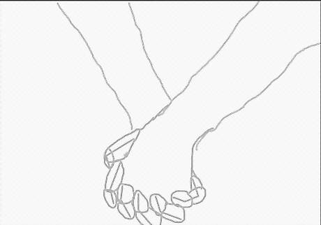 Draw the hands. Find a separate reference image that shows hands holding each other in greater detail. Feel free to simplify because of the difference in size. This is a silhouette, so most of the fingers won't even be shown.