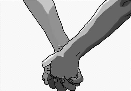 Get a reference picture. Try a simple image search for "two people holding hands", or "cartoon characters holding hands" if you want something more stylized. In the scheme of things, this is probably the most critical step. One hand isn't the most basic thing to draw, with its complex shape and proportions. Drawing two hands is by no means easy, and you have the added challenge of conveying the ways that the fingers and palms overlap.