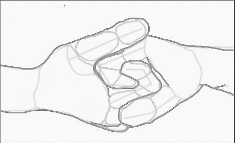 Outline the drawing. Using the guidelines you've been making, trace the outline, editing it as you go along. For example, don't outline every dip as you change from one oval to the next. Instead, make the fingers—and everything else—realistic.