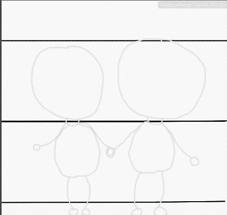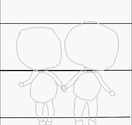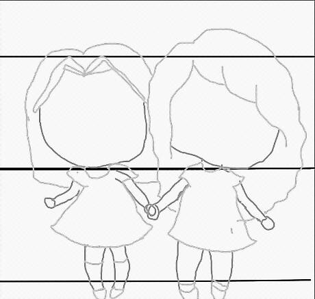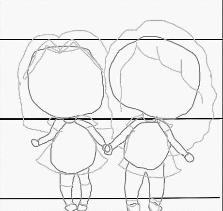 Connect the heads to the bodies with two lines. These will become the neck.