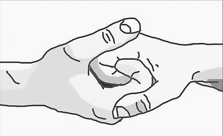 Get a reference image for the alternative pose you are trying to draw. When drawing hands, it's always a good idea to have a reference, even if you don't copy it exactly. It's good to know where to place things, to imagine things from different angles, and so forth.