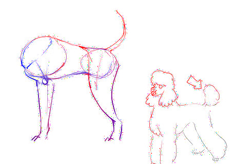 Start out by drawing the chest. The chest is the base of your drawing and will help you getting the other proportions right. It's okay to reference images of poodles or dog skeletons to get the general shape right.