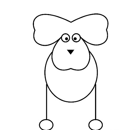 Draw the head. Poodles have fairly thin and long muzzles and floppy ears. Once again, we can take help from the skeleton to accurately draw the shape and proportions of the head. Doesn't look much like a poodle, does it? That's because we're not done yet. It still needs its fur which is a critical part of the poodle image.
